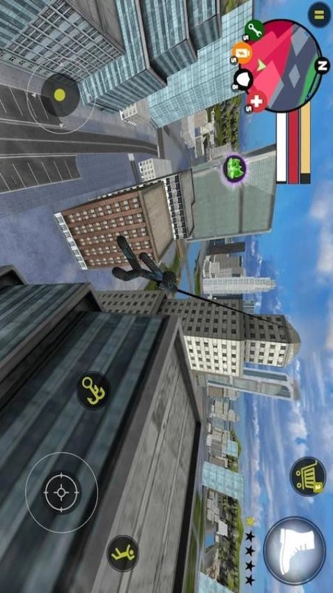 向左移动并加速,右侧控制绳索,可进行攻击(含跳跃攻击),还能实现跳跃操作。屏幕右上侧武器更换以及血量、经验的显示均实时更新,清晰可见。玩家能凭借自由玩法,与其他帮派人物交火。交火期间,杀人可获取经验,杀人数累积到一定程度会产生星级。此时,警察和周边其他角色会对你格外 “关照”,对你发起猛烈进攻。而如何生存下来,以及怎样将其他人物成功击杀,就是你需要完成的任务。