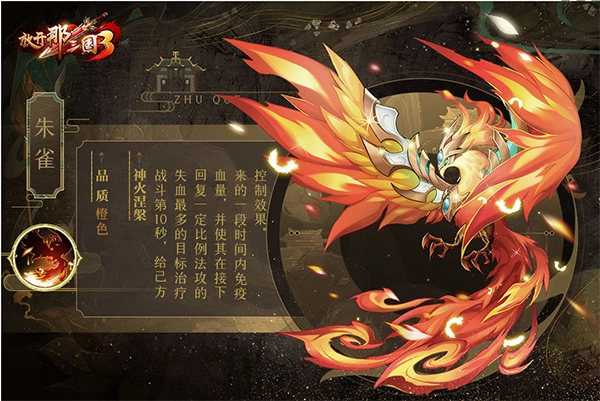 3、技能简评:朱雀作为辅助型神兽,其免控增益颇为亮眼。当队伍奶量不足,或是开场就遭遇强控的战斗场景时,它能提升我方低血量武将的生存能力。不过,该技能释放时间限定在开场后第10秒,若想让技能效果充分发挥,就得格外留意敌我双方技能的释放时机。