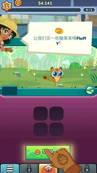 当然,你还能通过投喂的方式来饲养这些动物。比如购买一些糖果去投喂动物园里的动物,先选择用金币购买食物,接着把糖果喂给老虎,如此一来,它们就能为你的动物园赚取更多金币。