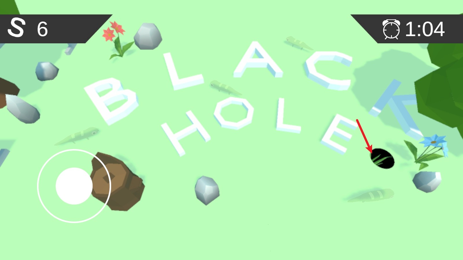 1、当进入游戏后,我们能够借助左侧的摇杆操控黑洞移动。