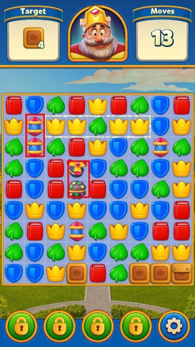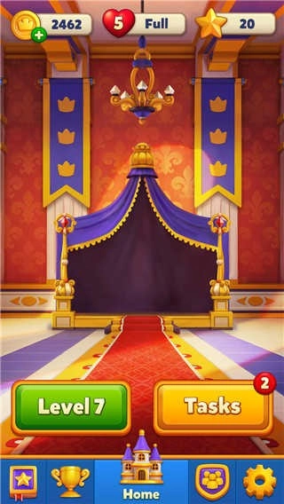 Royal Match,中文名皇家比赛,是一款风格独特的三消游戏。它有着卡通明亮的画风,玩法简单,容易上手,极具解压效果。在游戏里,玩家只需把三个及以上相同元素组合起来,就能实现消除。而且,合并不同数量的宝石,还会触发强力道具,助力玩家获得更高分数。