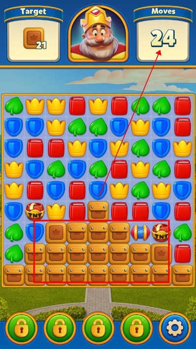 3、把相同颜色的物品组合起来,就能消除被锁住的箱子。不过,务必留意剩余步数,要是步数耗尽还没消灭所有箱子,就意味着通关失败。
