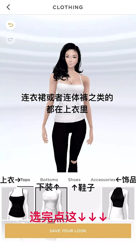 4、选完人模后,挑选初始形象,可随意选择,你当下所选的物品都会保留在你的衣柜中。选好后,点击黄色按键进入下一个页面。