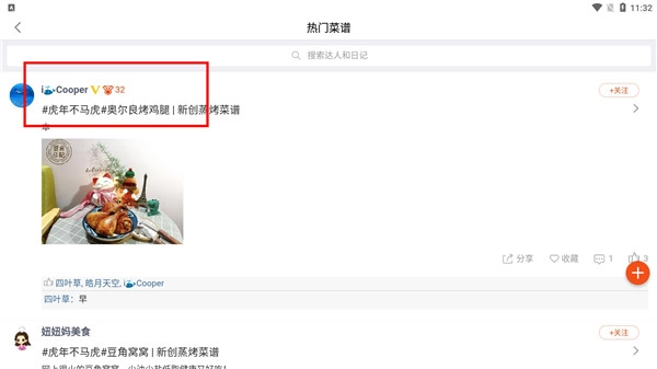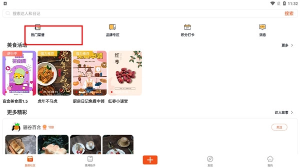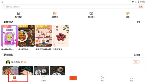2、接下来,点击厨房社区,查看其他用户的动态。