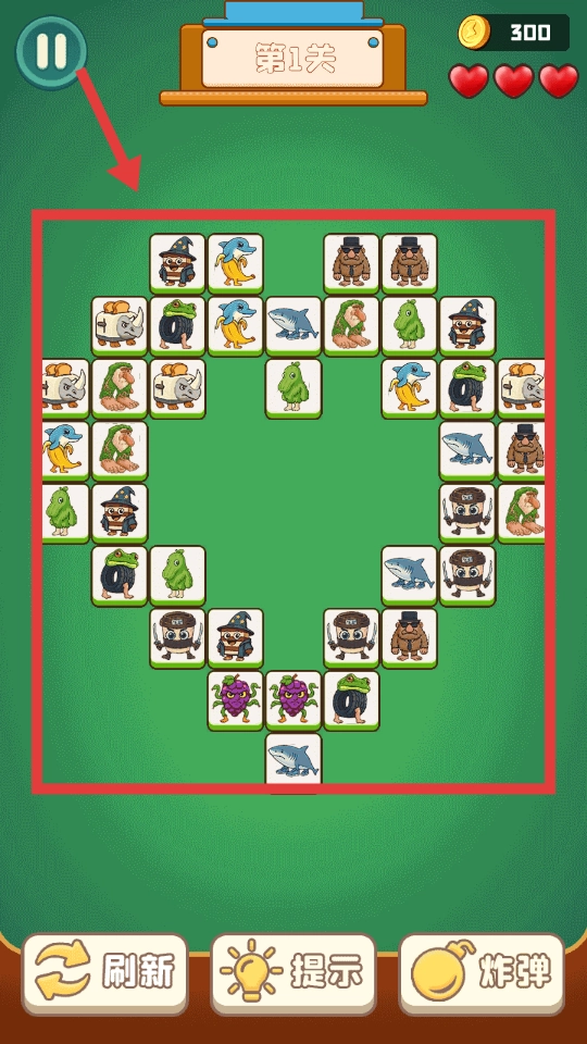 3、借助底部的“刷新”“提示”“炸弹”道具,助力攻克消除难点。