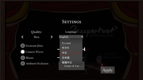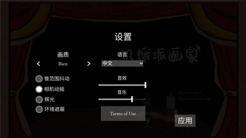 1. 启动《饥饿派画家》,点击首页的“settings”以打开设置。