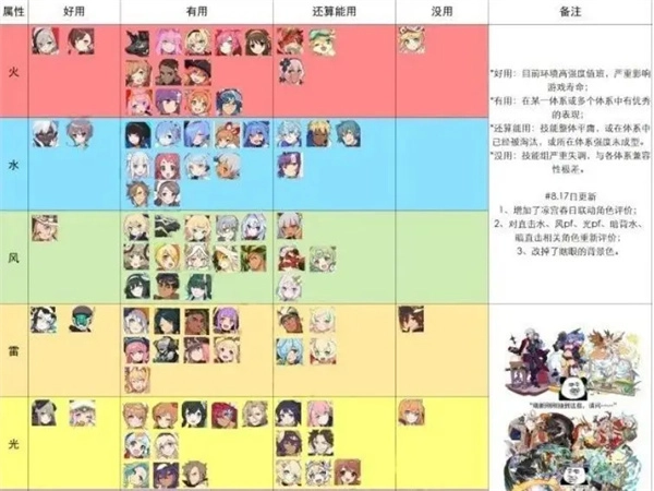 分析:该角色是配队核心,其队长技能为水属性角色攻击力提升30%。而且,每当连击数达到30时,水属性角色攻击力还会额外提升12% ,此额外提升最多可达60%,这能让水属性角色的攻击力得到大幅提升。