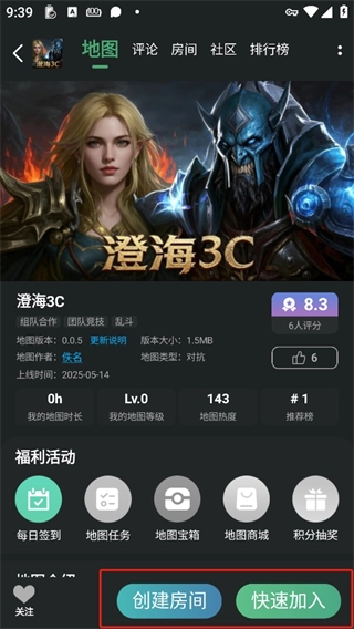3、你既可以点击“创建房间”,与朋友一同玩耍,也能够点击“快速加入”。