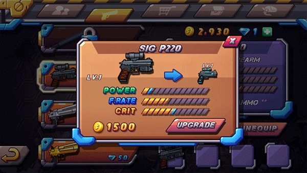 8、获得金币之后,便能够对枪械进行升级。