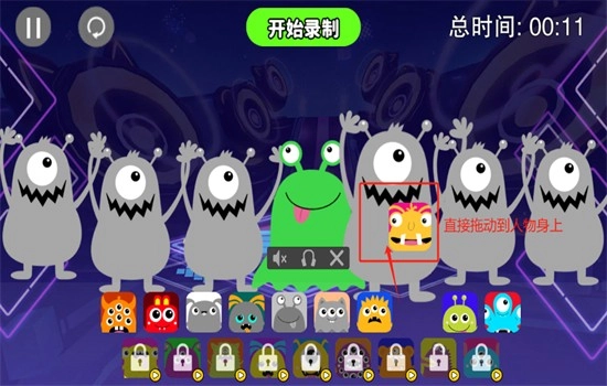 3、进入游戏之后,把下方图标拖拽至人物身上,就能开启演奏。