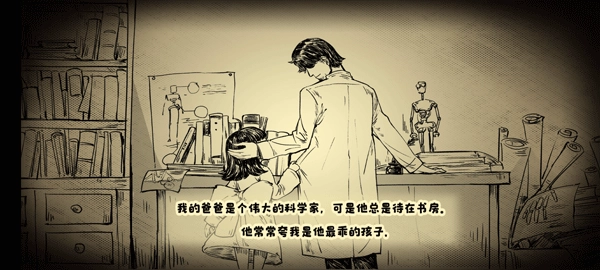 4、当艾瑞尔踏上类似秋千的木板时,点击木板上发光的翅膀。随即会触发艾瑞尔新的记忆,在这个画面里,艾瑞尔有一位身为科学家的爸爸。