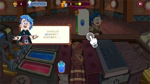 2. 注意,顾客此刻急切需要红色药水,赶紧点击水缸,获取那鲜红的精华液。