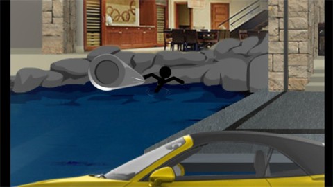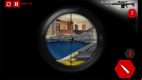 第六关:待目标位于两扇玻璃门中间时开枪,务必留意不能击中玻璃,以防阳台上的保安有所察觉。