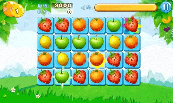 3、游戏开启后,你要找出三个及以上相同的水果,可选择横向或纵向,将它们连接起来就能实现消除。