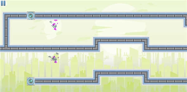 5、经过激光照射后,我们会出现分身,此时难度将直线上升,需要操控两位角色来躲避障碍物。