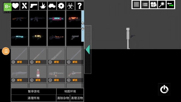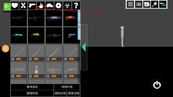 1. 进入游戏之后,点击打开状态栏,接着创建一个假人,随后挑选你的武器。