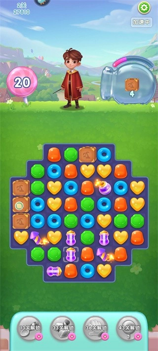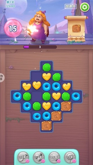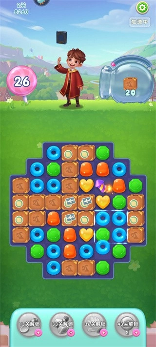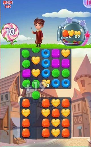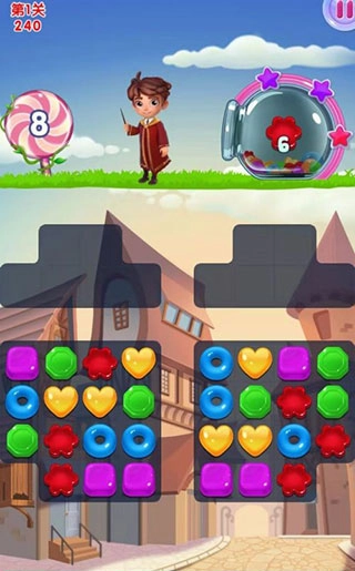 1、当三个颜色一样的糖果连在一块儿,就能进行收集,这便是魔法的力量。每个关卡都设定了收集目标,只要达成目标,就能顺利通关进入下一个关卡。