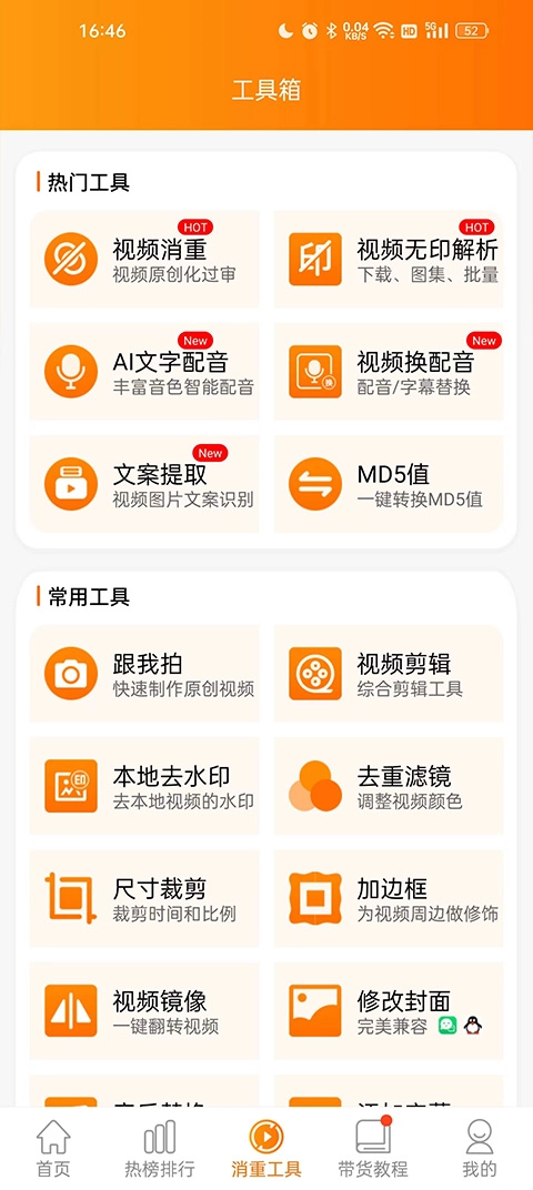 具备多样化的视频剪辑功能,涵盖本地视频消重、封面提取、文案提取、去除水印、MD5值修改、视频变速、镜像处理以及音乐替换等。