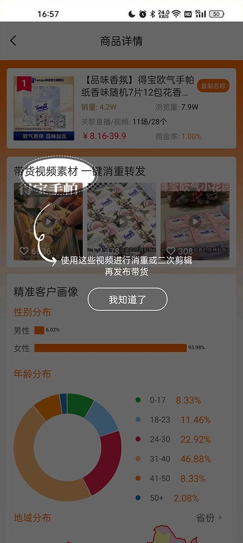 明确标注出契合的客户群体画像,使带货更具针对性,不再盲目。