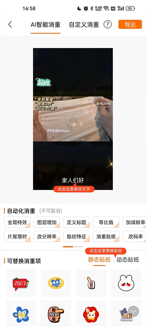 所有视频皆能通过智能DIY实现一键原创。