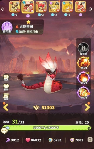 当前强度顶尖的阵容为:熔岩甲龙、炽火醉龙、熔山甲、霸道龙人、舞火凤、火蛇祭司 。此套体系核心在于火系燃烧,具备超强的整体输出能力。哪怕敌方配有治疗宠物,也难以抵御这股伤害,一轮回合下来,敌方宠物不是死亡就是重伤。