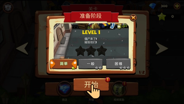 1. 开启植物横扫僵尸手机版本,轻点开始游戏选项,进而挑选游戏关卡。