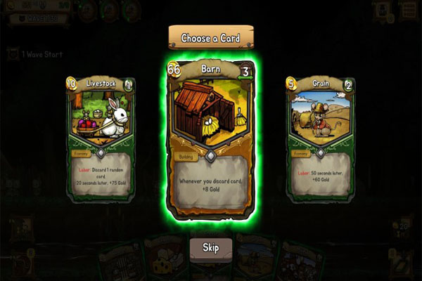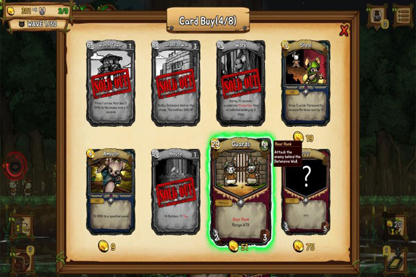 8、到了后期,商店里就别选兵种了,要拿技能牌。毕竟兵就算再多,在实际战斗中也常常会不够用,而放出技能直接削减怪物血量,这才是制胜关键。