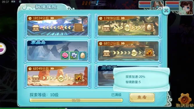 7、秘境探索,建议尽快升到最高级秘境,有速度加成,摇钱树,钱生钱;