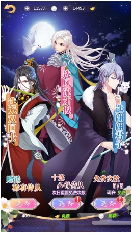 4、选秀(3级开启):陛下可在选秀中消耗货币,获得丰富的道具和侍从,达到vip11级还可开启无双国士选秀~有机会获得更优秀的侍从哦!