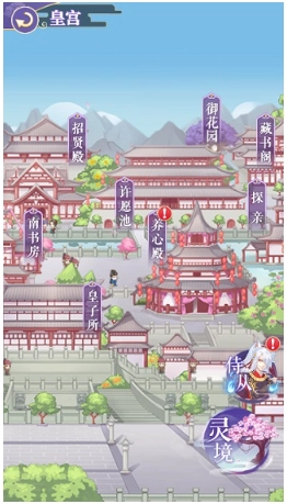 6、皇宫(1级开启):包括御花园、招贤殿、藏书阁、许愿池、探亲、养心殿、皇子所。