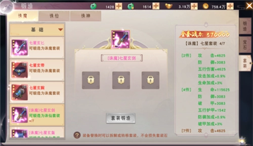 诛仙套:无论男女皆适用,无法通过诛魔石合成诛仙石。此套可在神魔禁地获取,不过数量相对稀少。同时,商城每日限购中也有供应(每日仅99个),且购买后还有机会随机获得诸神石。