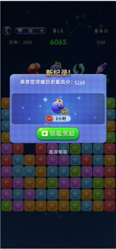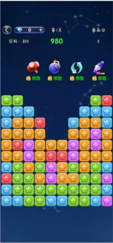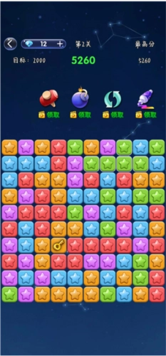 游戏中的星星颜色各异,玩家可以通过消除同色的星星来获得更高的分数。