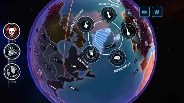 三、当有国家对你发起攻击时,你能够点开任意一个板块,此时会出现一个新图标。只要点击这个图标,就能实现导弹拦截。不过,这有个前提条件,即该板块此前已建立起防御体系,在发起攻击时也是同样的要求。每个板块在进行防御、攻击或者研究操作时,会进入待机状态,处于待机状态期间,无法进行其他操作。一旦你的某个板块遭受轰炸,即便不会完全毁灭,该板块建造工程所能达到的上限也会降低。