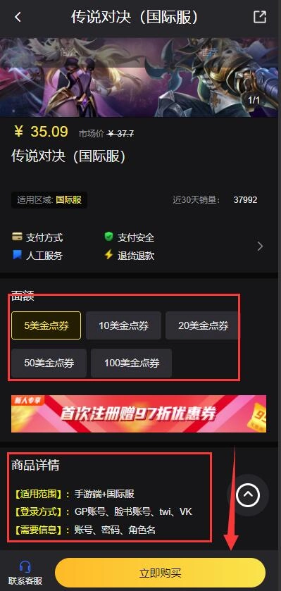 第三步:选择充值面额,认真阅读底部注意事项后,再点击立即购买。