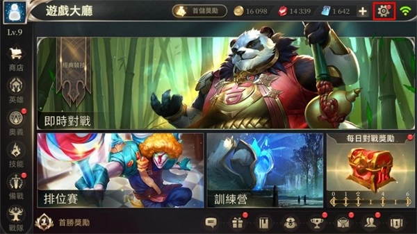 打开《传说对决》,进入游戏,点击右上角齿轮状的设置图标。