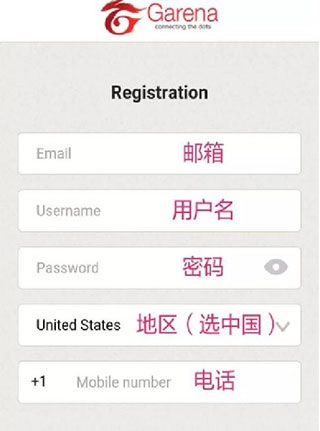 2、打开Garena,将地区选择为中国,向手机发送一条验证码,之后再次登录,即可注册成功。