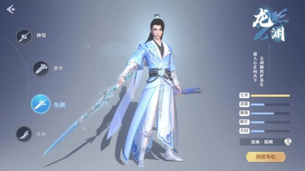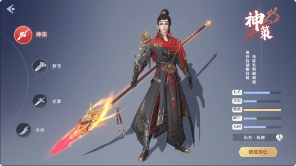 2、玩家在创建角色时可以选择不同的职业,如神策、梦花、龙渊、沧海等,每个职业都有其独特的战斗风格和属性。