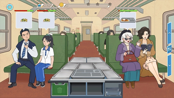 时代绿皮车游戏是一款非常好玩的休闲模拟经营类型游戏,也是一款非常怀旧以及快节奏的游戏,在这款游戏之中你将会扮演一位在绿皮火车上买便当的乘务员,你需要为乘坐火车的客人制作并且提供美味的事物,满足不同食客的需求。时代绿皮车游戏中你需要合理的规划便当的摆放位置以及制作便当的速率,不要因为制作的太多而导致卖不出去,也不要因为制作的太少而导致不够卖。感兴趣的小伙伴快来时代绿皮车游戏玩耍吧。