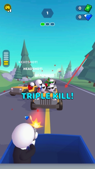 1、瞄准骑摩托/开车的敌人,点射攻击,优先打载具(如黄色车),触发“TRIPLE KILL”。