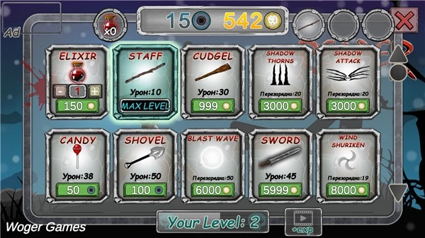 6、通过关卡或失败后就会进行结算,用获得的金币可以在主页的商店中购买各种武器道具。