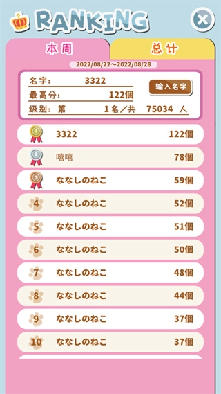 6、点击排名玩家,即可查看本周排行与总计排行。