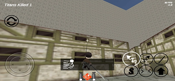 3、滑动屏幕,让画面瞄准墙壁或者巨人,接着启动钩锁,便能直接起飞。