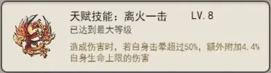 关键天赋技能:【离火一击】 、【神融龟息】 与【凝神回击】 、【无形春风】