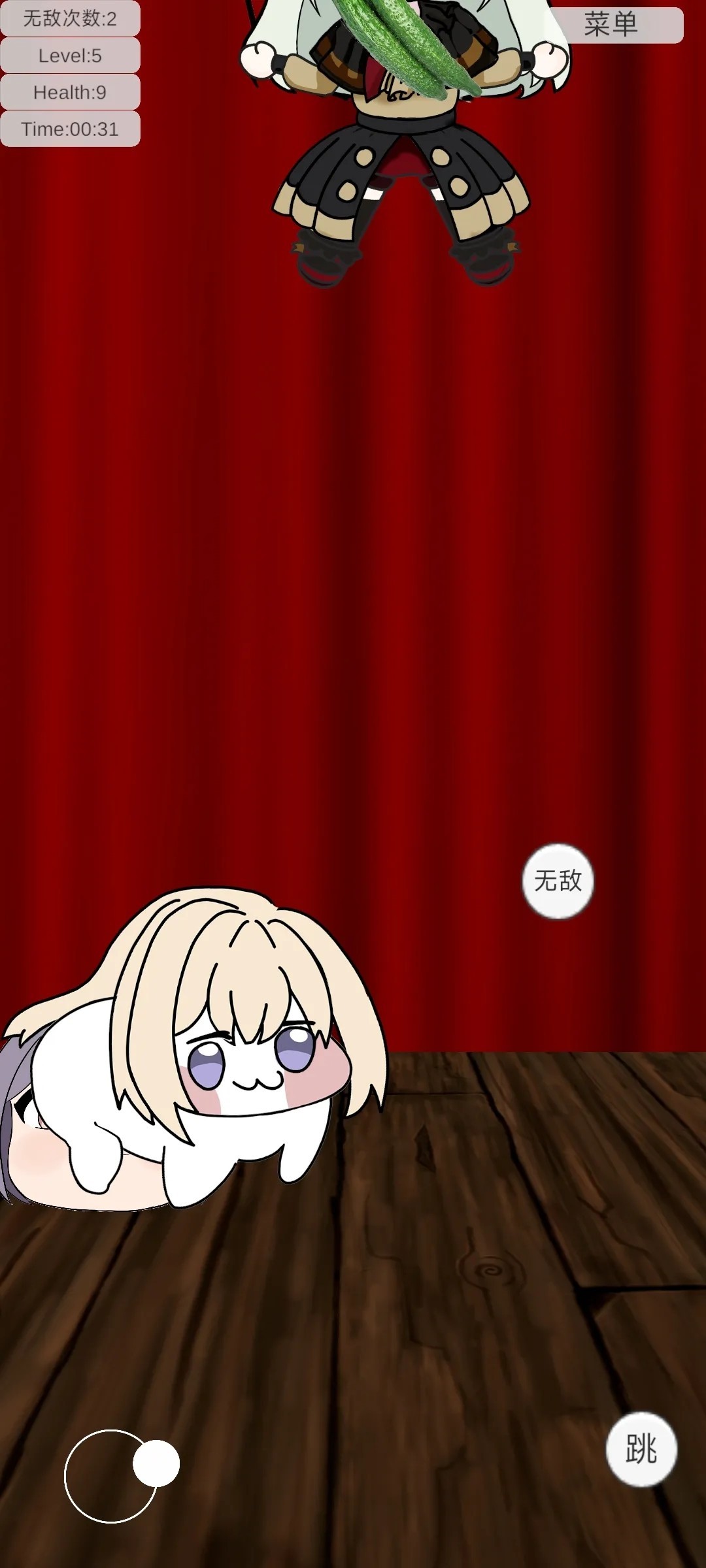 2. 左侧轮盘用于操控角色移动,右侧则是跳跃键与无敌键。