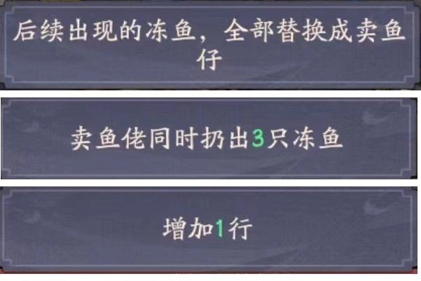 玩法核心在于好汉的输出强度与频率,还有地痞的速度,具体操作为:全面替换冻鱼仔,添加3只鱼,并增加1行。