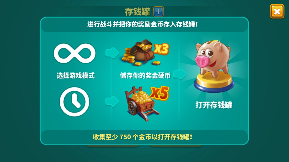 4、这里还有存钱罐模式呢,但需要收集至少750个金币,才能开启存钱罐。