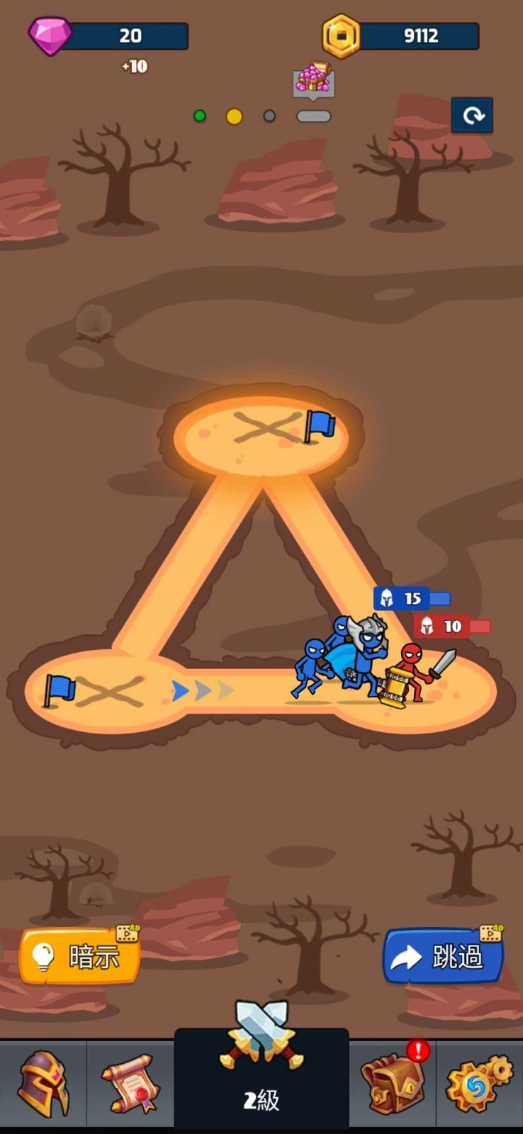 3. 玩游戏时,我建议大家先尽量攒够金币。制造出士兵后,别急着直接发起进攻,等攒到一定数量的士兵,再发动进攻,这样更容易攻破敌方的防御塔,这一点务必注意。就像散沙难成气候,合理调配使用士兵,过关会轻松许多。