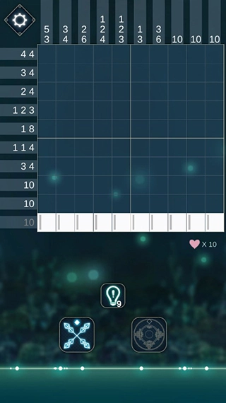当玩家踏入关卡后,需依据左边与上方的数字来点亮格子,只要依照要求顺利点亮全部格子,就能成功通关。