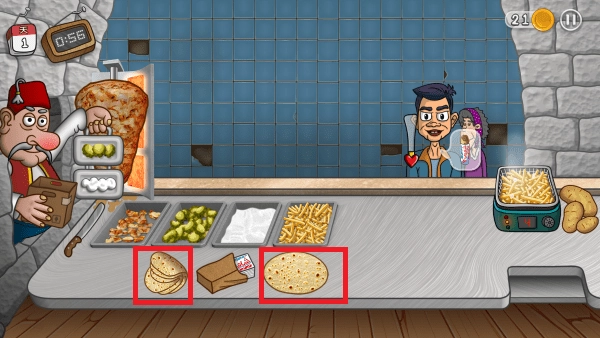 并且,当你把所有科技都解锁完毕后,就会察觉到这游戏在操作体验上仍不够流畅。就好比,有位站在5号位的顾客点了两盒橙汁,此时你就得逐个把最左边的橙汁拖到最右边的位置。要是这位顾客还额外要两个比克、两个薯条、两杯饮料,那你鼠标点击 - 拖动的动作就得重复做6次!!整整6次啊!!!要是这位顾客还要两杯橙汁,那你不但得拖动,还得等着另一杯橙汁重新接满。要是制作组能在科技树全部解锁后,让比克、饮料、橙汁、薯条盒都能自动送到顾客手中,玩家只需要负责制作VIP沙威玛,那就再好不过了,玩起来也会轻松惬意许多。实际上,要记住VIP的要求,也不是件容易事儿。