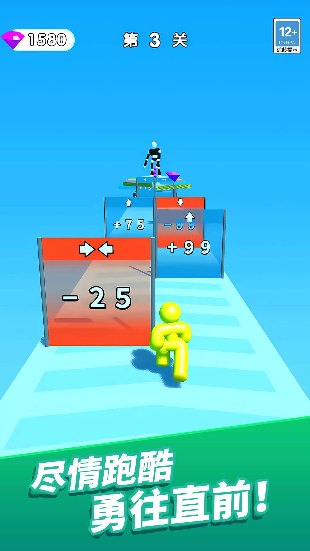 2、围绕趣味跑酷这一核心,巧妙融入运算元素。玩家置身于各异的关卡中尽情奔跑,需合理挑选运算门,借此提升自身数值,从而突破充满挑战性的烧脑难关。